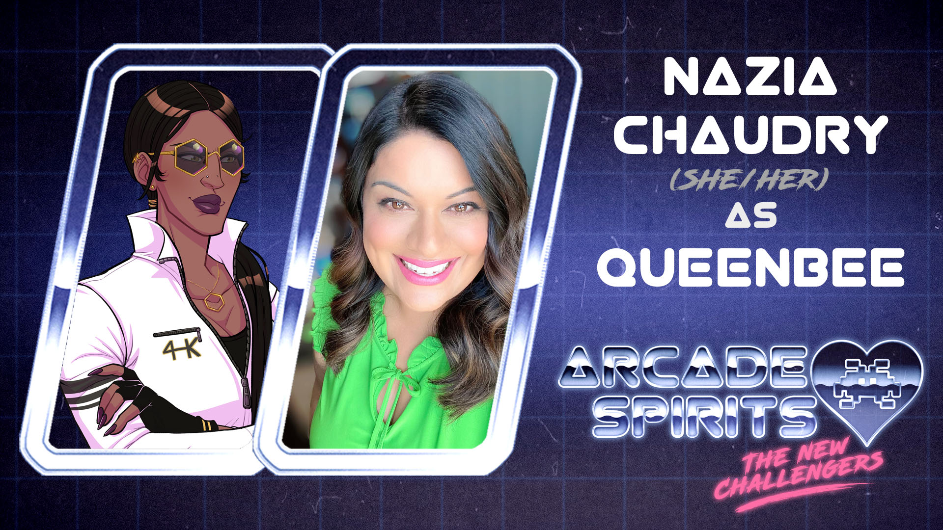 Nazia Chaudhry (Naz) is thrilled to return to the mic to play the role of Queen Bee in Arcade Spirits II. Naz is a SOVAS Award nominated voiceover artist, as well as an accomplished vocalist, actor, producer, and educator, with a performance career spanning well over 25 years. As an actor and recording artist, she has had success from stage to screen, appearing in musicals, operettas, and theater as well as on television, film, jingles and voiceovers. You can regularly hear Naz voicing in commercials and across genres of voiceover, including anime titles such as Wonder Egg Priority, Radiant, Black Clover, Millionare Detective and many more.